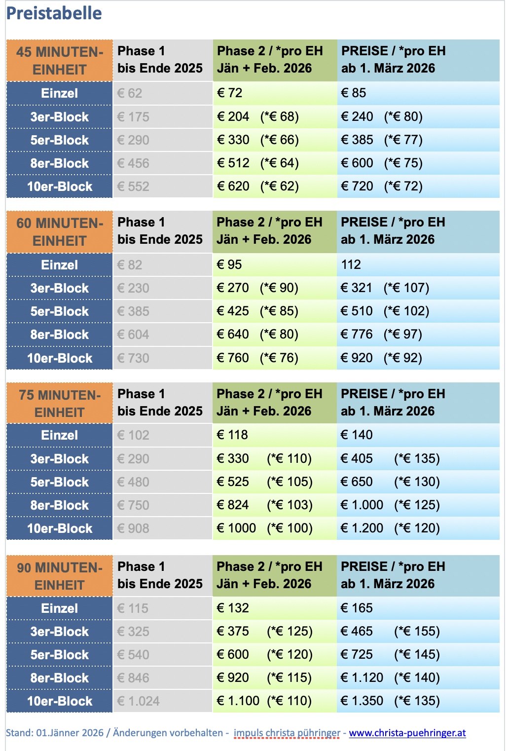 Von Jänner bis Ende Februar 2026 gilt noch eine Übergangsphase mit günstigeren Preisen.